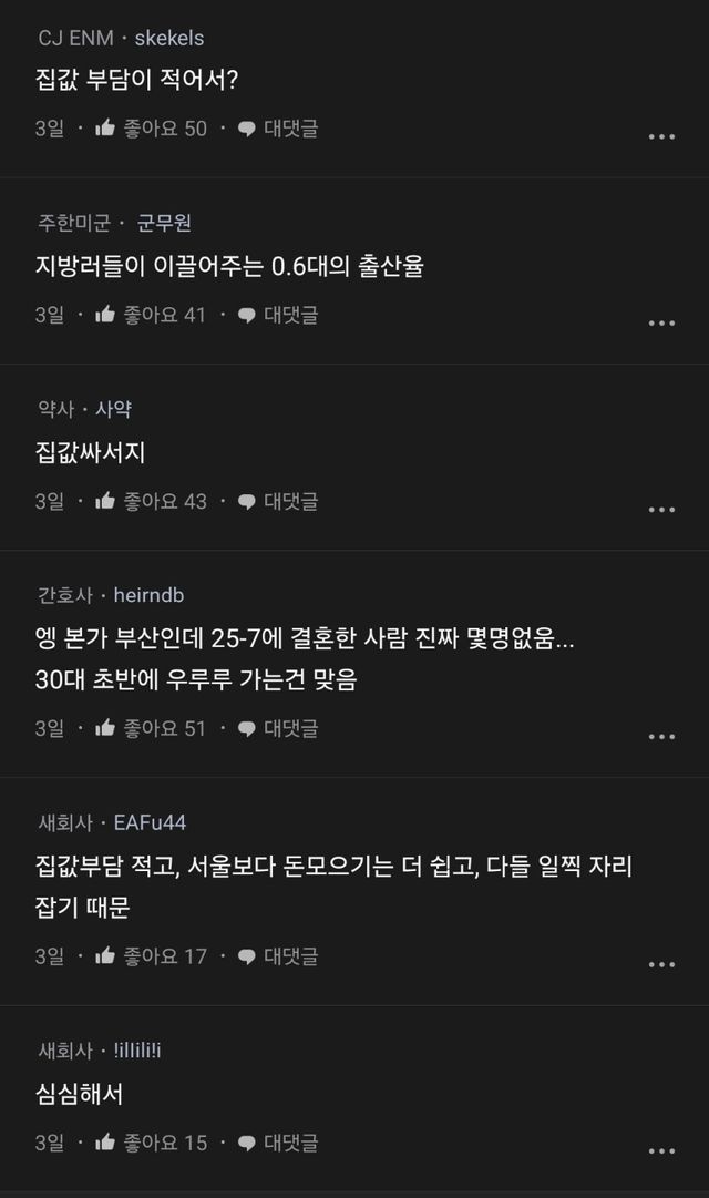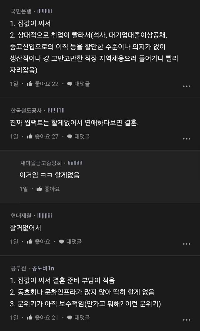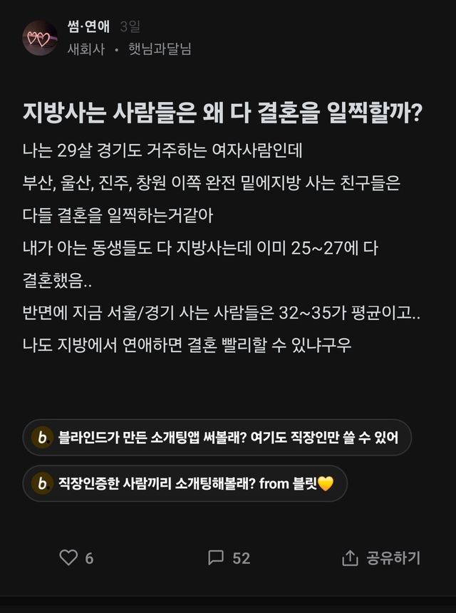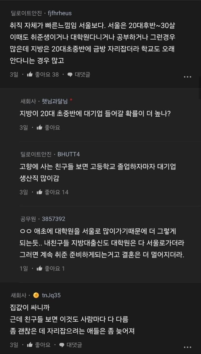 지방 사람들은 왜 다 결혼을 일찍할까?