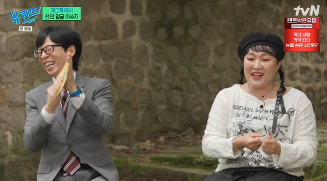 이수지는 23일 방영된 tvN 예능프로그램 ‘유 퀴즈 온 더 블럭’(이하 ‘유퀴즈’)에 게스트로 출연해 “사실 너무 긴장된다”며 “유재석 선배와 너무 오랜만에 방송을 하기도 하고 내 최악의 단점이 선배들 앞에선 주눅이 들어서 (코미디를) 잘 못하는 것”이라고 했다.