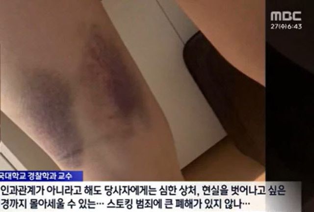 같은 날 새벽 1시17분쯤 이웃의 112 신고를 받고 출동한 경찰에 의해 집에서 쫓겨나게 되자 인근에 머무르면서 오후 3시까지 13시간 동안 문을 두드리거나 초인종을 누르고, 365회에 걸쳐 메시지를 보내는 등 스토킹 한 혐의도 받는다.