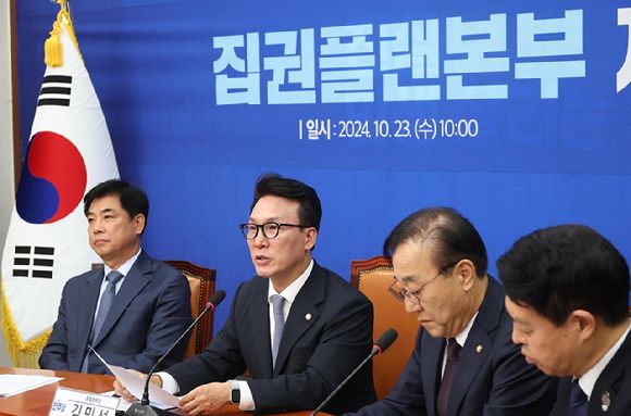 민주당 집권플랜본부는 23일 국회에서 첫 회의를 진행했다. 지난 7일 설치를 발표한 지 16일 만이다. 김민석 수석 최고위원을 본부장으로 하는 이 기구는 △기획상황본부 △정책협약본부 △먹사니즘본부 △당원주권본부 △10만 모범당원 정권교체 위원회 등 4본부·1위원회 체제로 구성됐다.