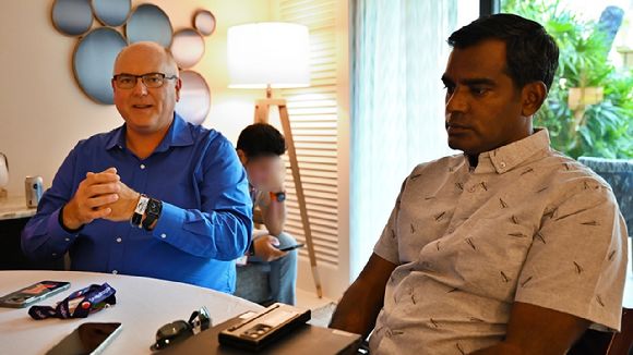 22일 오후(현지시각) 하와이 마우이 스냅드래곤 서밋 2024 현장에서 국내 취재진과 만난 안슈만 삭세나 퀄컴 테크날러지 제품 관리 부사장과 마크 그레인저 퀄컴 테크날러지 제품 관리 시니어 디렉터는 퀄컴의 오토모티브가 글로벌 시장에서 어느정도 위치에 있다고 보는지 묻는 질문에 대해 이같이 답했다.