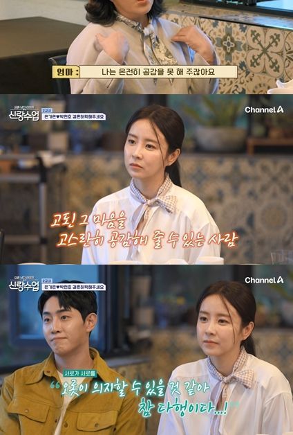 또 박현호 어머니는 "나는 현호가 같은 업계 사람 만났으면 했다. 왜냐면 방송 일로 스트레스 받을 때 나는 온전히 공감 못해주지 않냐. 서로 일하고 왔을 때 마음을 고스란히 느끼고 도움이 될 것 같아서 엄마로서 반갑다"라며 은가은에게 호감을 드러냈다.