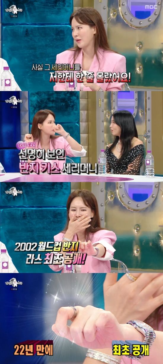 (엑스포츠뉴스 이이진 기자) 미스코리아 출신 이혜원이 전 축구 선수 안정환이 2002년 월드컵 당시 착용한 반지를 최초로 공개했다.