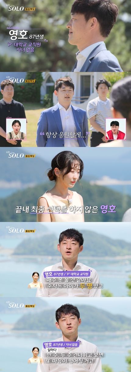 (엑스포츠뉴스 임나빈 기자) 22기 영호가 최종선택을 포기하며, 순자와 커플이 되지 못했다.