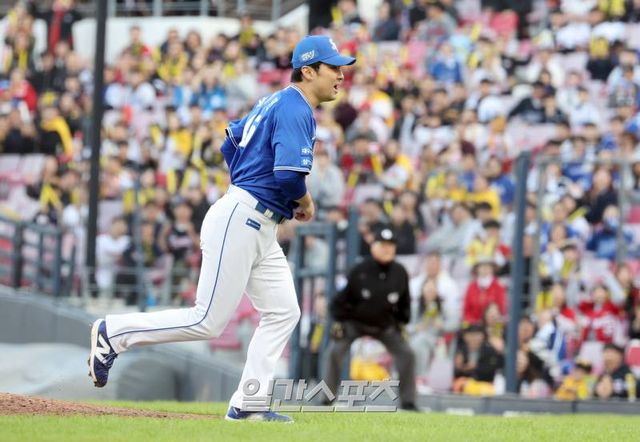 결국 이는 연패로 이어졌다. 이틀 뒤 23일 재개한 1차전에서 불펜진을 가동한 삼성은 7회 말 볼넷과 안타로 흔들리더니 폭투 2개로 동점과 역전을 허무하게 내주며 고개를 숙였다. 이후 3점을 추가로 더 내주면서 충격의 역전패를 당했다. 무사 1, 2루까진 승리확률이 73%나 됐지만, 가을비 앞에선 소용이 없었다.
