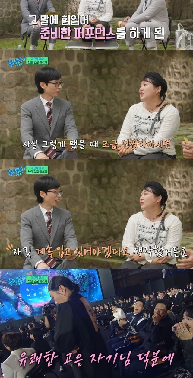지난 23일 방송된 tvN 예능 프로그램 '유 퀴즈 온 더 블럭'에 출연한 이수지는 '천의 얼굴'로 불리는 이유와 함께 배우 김고은과의 첫 만남 에피소드를 솔직하게 고백해 이목을 끌었다.