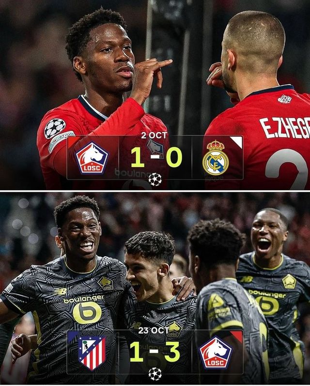 릴은 24일 오전 4시(한국시간) 스페인 마드리드에 위치한 리야드 에어 메트로폴리타노에서 열린 2024-25시즌 유럽축구연맹(UEFA) 챔피언스리그(UCL) 리그 페이즈 3차전에서 아틀레티코 마드리드에 3-1 승리를 거뒀다. 릴은 2승을 거둬 15위에 올라있고 아틀레티코는 탈락권인 27위에 위치 중이다.