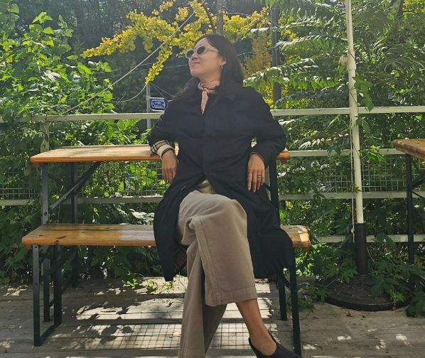 공개된 사진에서 공효진은 테라스에 앉아 가을을 만끽하며 여유로운 시간을 보내고 있는 모습이다.