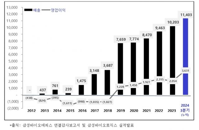 24일 전자공시시스템에 따르면, 삼성바이오에피스는 올 3분기 매출액 3303억원, 영업이익 679억원을 기록했다.