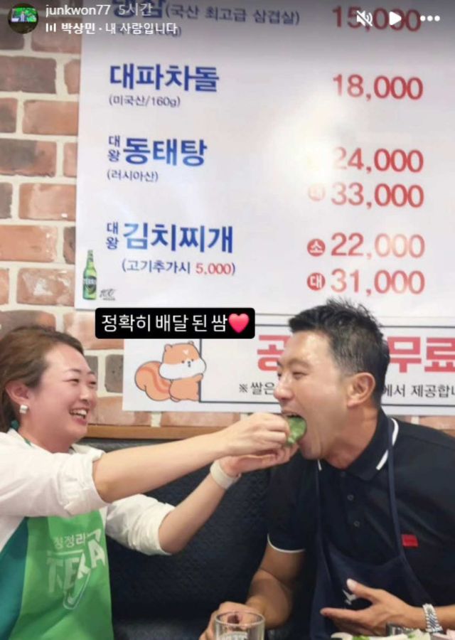 10기 상철 입에 쌈 넣어주는 22기 정숙. / 상철 인스타그램 스토리