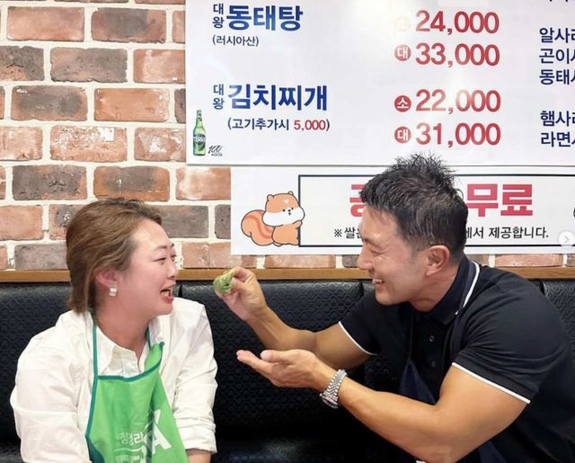 22기 정숙 입에 쌈 넣어주는 10기 상철. / 정숙 인스타그램
