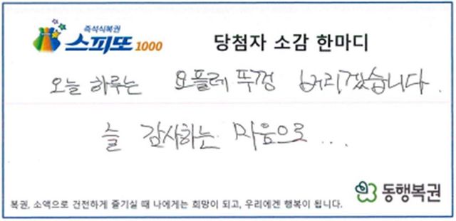 당첨자 소감 한 마디 / 동행복권 제공