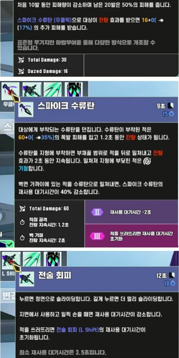 난이도2로 신규 이용자에게 추천되는 캐릭터다. 패시브는 전술 회피 재사용 대기시간이 초기화된다. 기본 공격은 30발의 탄창을 발사한다. 쿨타임 0.3초라 계속 발사가 가능해 보인다. 빠르게 움직이는 난투에서 슈류탄의 범위가 넓지 않은 이상 타깃팅이 어려워 보인다.
