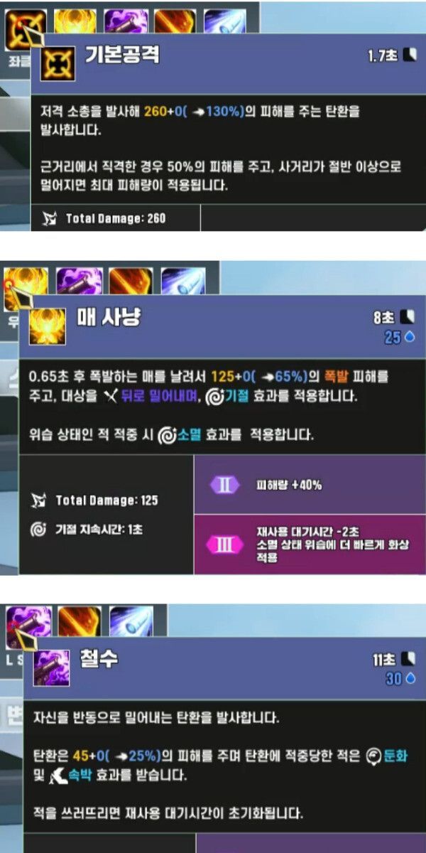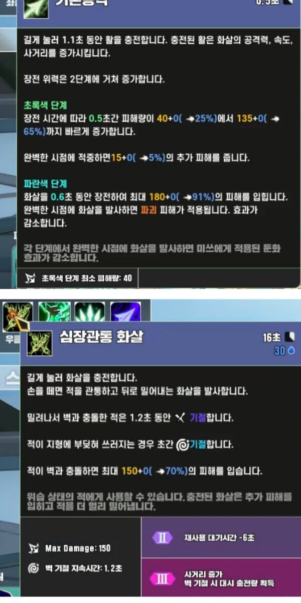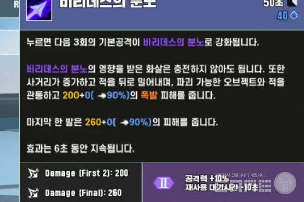 화살비라는 범위 공격도 좋지만 기본 공격이 좋은 캐릭터라고 볼 수 있겠다. 다만 난투전에서 얼마나 시간을 들여서 충전을 할 수 있느냐가 관건이다.