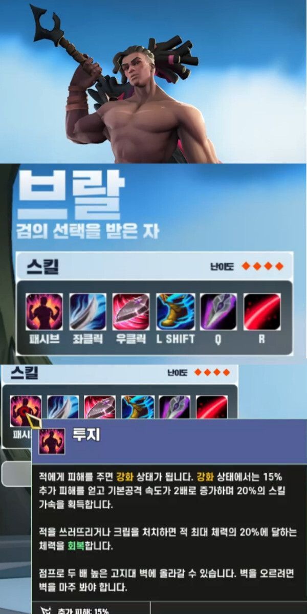 가장 많은 곳에서 1티어를 받은 캐릭터다. 적에게 피해를 주면 강화 상태가 되어 공속이 2배 증가, 20% 스킬 가속이 된다. 적을 쓰러트리면 20%의 체력을 회복한다. 기본 공격 쿨타임이 0.2초인데 공속 2배가 되면 얼마나 빨라질까? 거기에 최대 4회까지 연속 공격이 기본 공격이다. 길게 누르면 원거리 화염 폭발을 날린다.