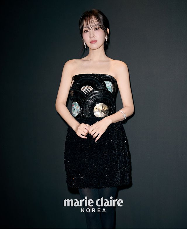 이어링과 브레이슬릿을 착용한 배우 박보영은