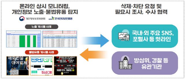 이번 대응 강화방안에 따라 개인정보가 포함된 대출 데이터베이스(DB) 등의 불법 매매를 근절하기 위해 개인정보 불법유통을 전담 수사하는 경찰청과의 공조도 강화한다. 개인정보위와 한국인터넷진흥원(KISA)은 불법거래 게시물을 프로파일링해 수사과정에 필요한 맞춤형 데이터를 생성·제공하고, 수사기관은 검거에 활용함으로써 상습 매매자에 대해 신속 대응한다.