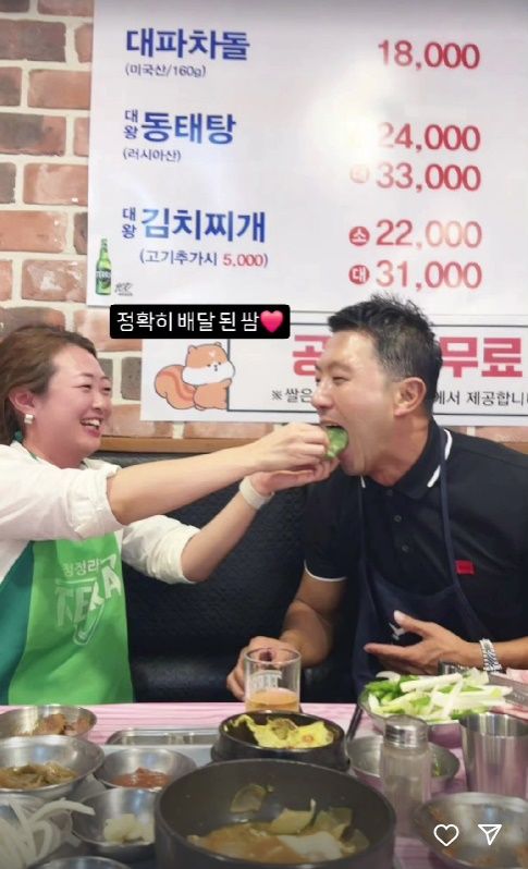 정숙은 "2024. 10. 14. 미쿡에서 배달된 쌈♥"이라며, 상철은 "정확히 배달된 쌈♥"이라며 식당에서 서로에게 쌈을 먹여주는 사진을 업로드하며 애정을 과시했다.