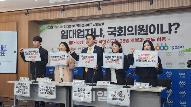 경제정의실천시민연합(경실련)은 24일 오전 서울 종로구 경실련 강당에서 ‘22대 국회의원 임대업 심사 실태발표’를 주제로 한 기자회견을 열고 이 같은 내용을 발표했다.