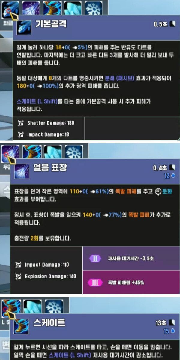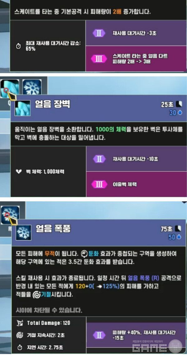 그리고 얼음 장벽을 소환, 1000의 체력을 보유한 벽은 투사체를 막고 벽에 충돌하는 대상을 밀어낸다.
