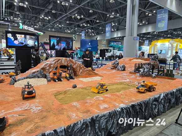 이날 HD현대건설기계와 HD현대인프라코어는 최신 제품과 스마트 기술 및 솔루션을 소개했다. 특히 이날 전시회에서는 RC 미니 건설장비 원격 조종 체험이 인기를 끌었다. RC 체험에서는 화성의 작업 현장을 배경으로, 기계들을 직접 조종해 각 장비가 어떤 특징이 있고 어떤 역할을 수행하는지 함께 살펴볼 수 있었다.