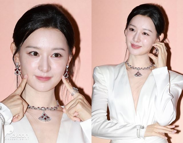지난 9월 26일 서울 삼청동 뮤지엄 한미 삼청에서 이탈리아 주얼리 브랜 불가리의 전시회 '영원한 재탄생: 아트와 주얼리, 로마의 영감을 찾아서' 오프닝 행사가 열린 가운데 불가리의 앰버서더 배우 김지원이 참석했다.
