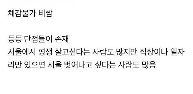 서울 살이 장단점..
