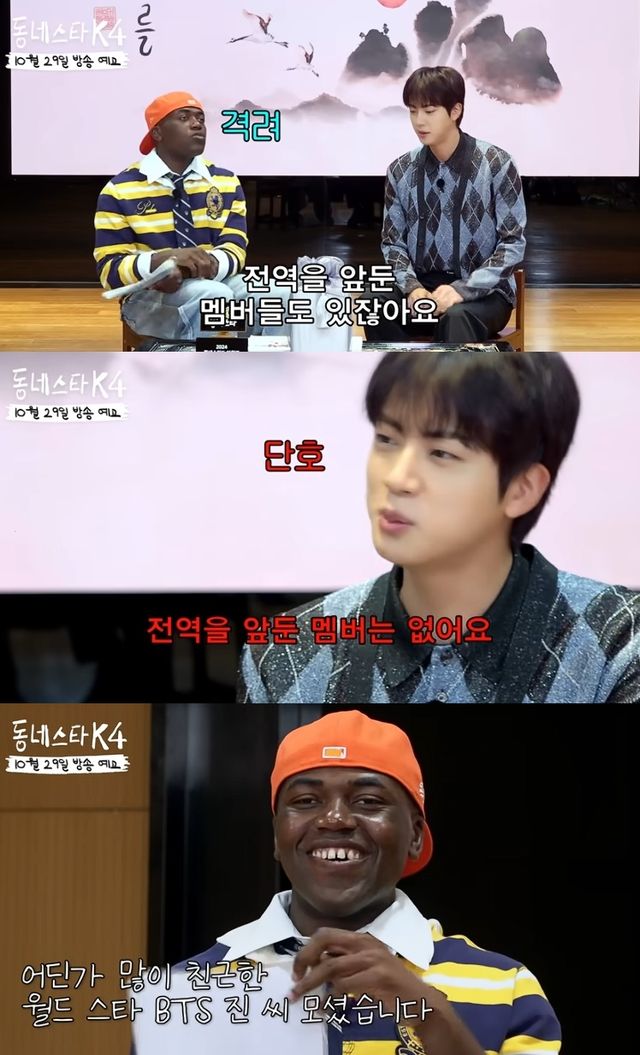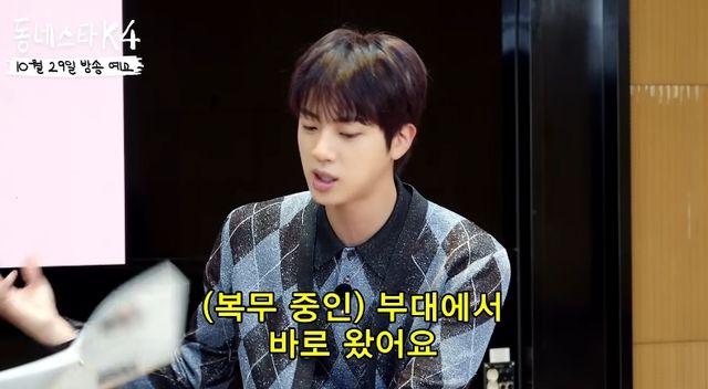 한편 방탄소년단 진은 지난 2022년 12월 13일에 현역 육군으로 입대해 올해 6월 12일 만기 전역했다. 방탄소년단 진이 등장하는 '동네스타K4' 31회는 10월 29일 공개된다.