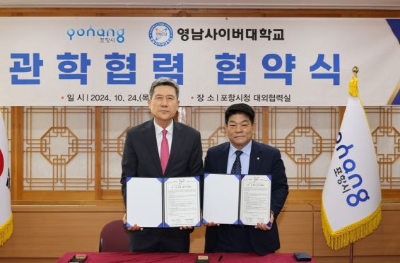 [파이낸셜경제=김예빈 기자] 포항시는 24일 시청 대외협력실에서 영남사이버대학교와 관학 협력 강화를 위한 업무협약을 체결했다.