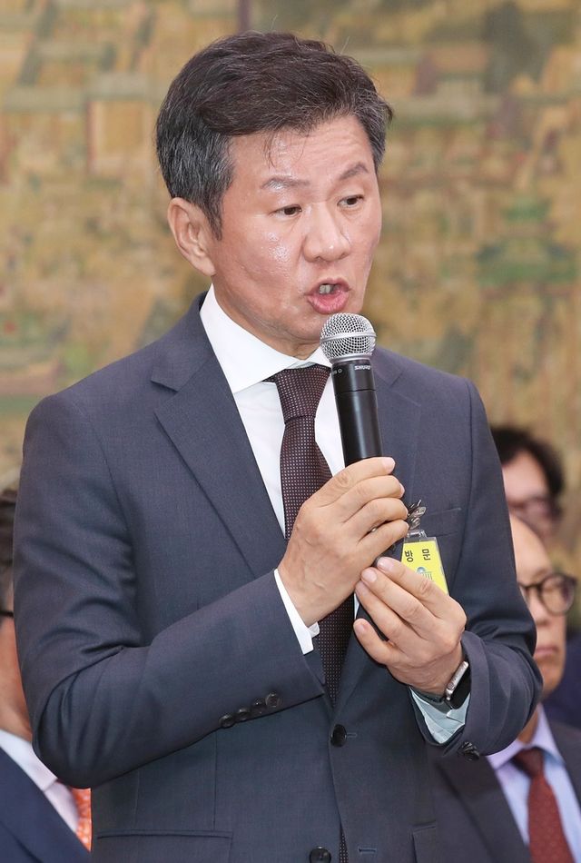 정몽규 대한축구협회장이 24일 오후 서울 여의도 국회에서 열린 문화체육관광위원회의 문화체육관광부 등에 대한 종합 국정감사에 출석해 의원 질의에 답하고 있다. / 뉴스1