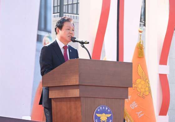박완수 도지사는24일 사천시 용현면에서55년 만에 새로운 보금자리로 이전한 경남 사천소방서 신청사 준공식에 참석해 준공을 축하했다.