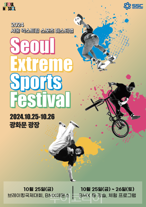 올해 처음으로 열리는 ‘2024 서울 익스트림스포츠 페스티벌’에서 국내외 선수와 시민들이 브레이킹·스케이트보드·BMX 등의 기술을 겨루고 새로운 스포츠 문화에 대해 소통할 수 있는 스포츠 축제로 꾸며진다.