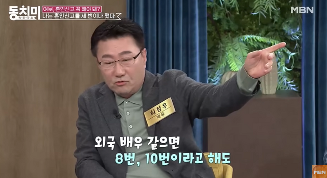 26일 오후 11시 방송되는 MBN 예능 '속풀이쇼 동치미'에는 게스트로 배우 최정우가 등장해 혼인신고를 세 번이나 하게 된 전말을 최초 공개한다.