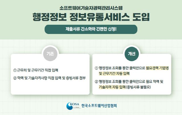 KOSA 관계자는 “구비 서류 제로를 목표로 앞으로도 행정정보 연계 항목을 더욱 확대해 SW 기술자들의 경력 관리 편의를 높이고 디지털 행정 혁신을 구현하겠다”고 말했다.