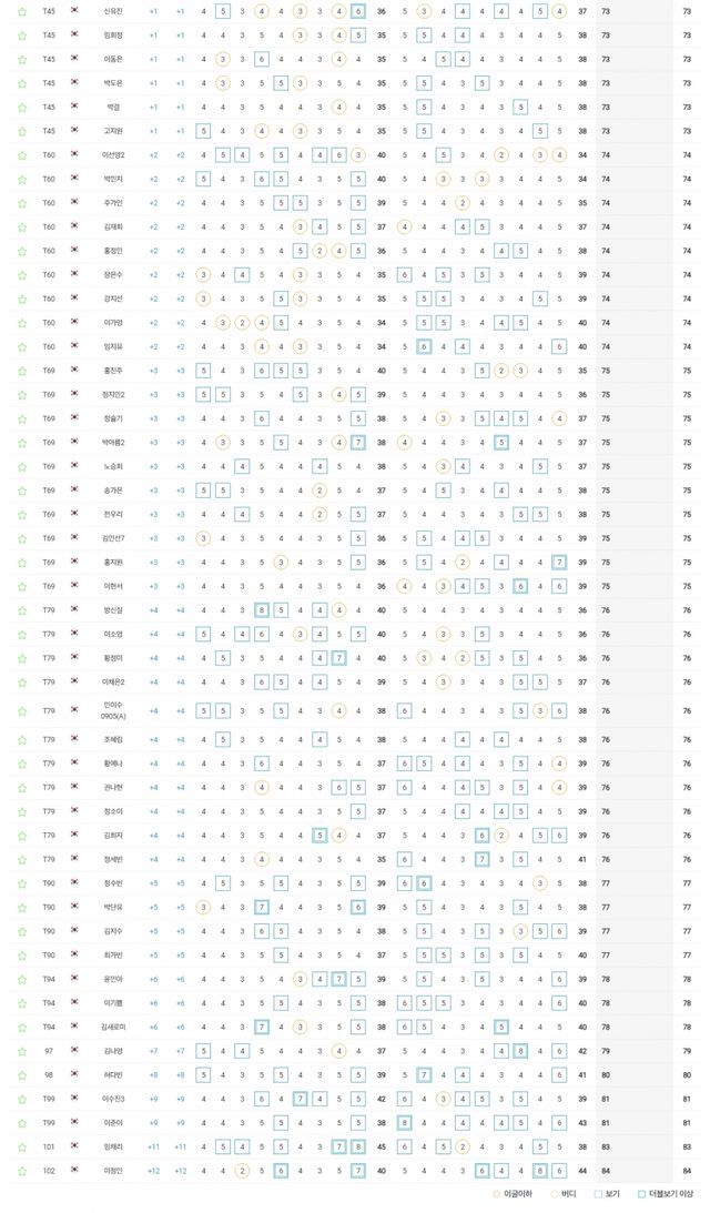 -컷오프 : 2023년(6오버파 150타 69명) 2022년(1오버파 145타 63명) 2021년(3오버파 147타 69명)
