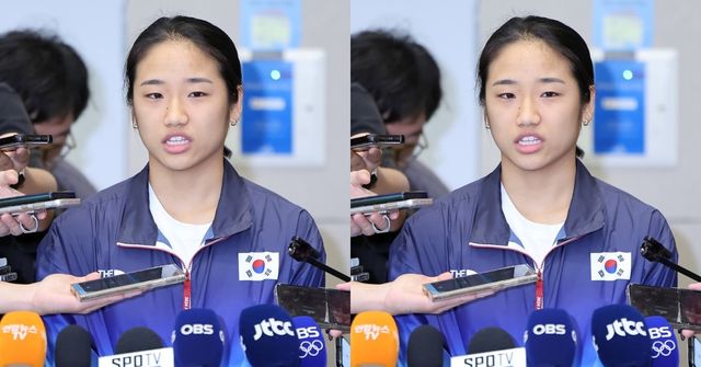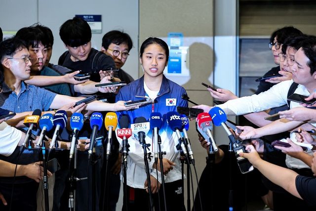 2024 파리 올림픽 배드민턴 여자단식에서 금메달을 획득한 안세영이 지난 8월 인천공항을 통해 귀국, 취재진과 인터뷰 하고 있다. / 뉴스1