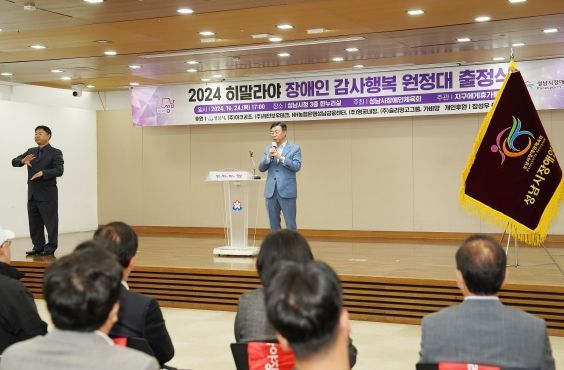 성남시장애인체육회와 민간단체 지구에게 휴가를는 10월 24일 오후 5시 성남시청 3층 한누리에서 ‘히말라야 장애인 감사행복 원정대 출정식’을 개최했다.