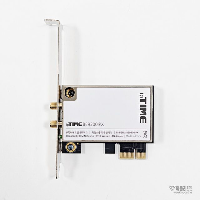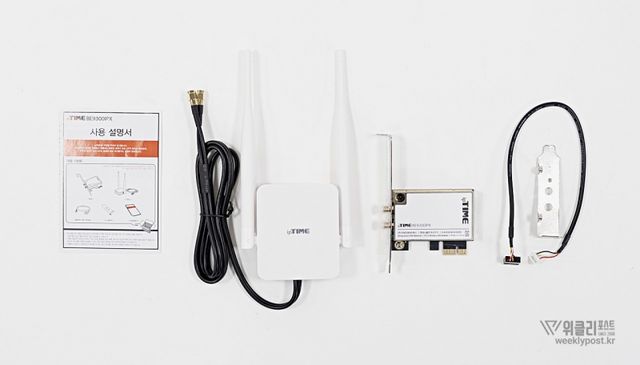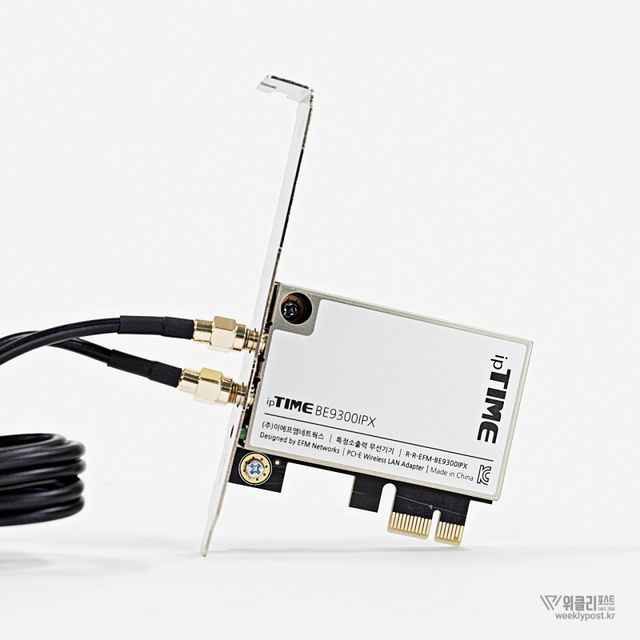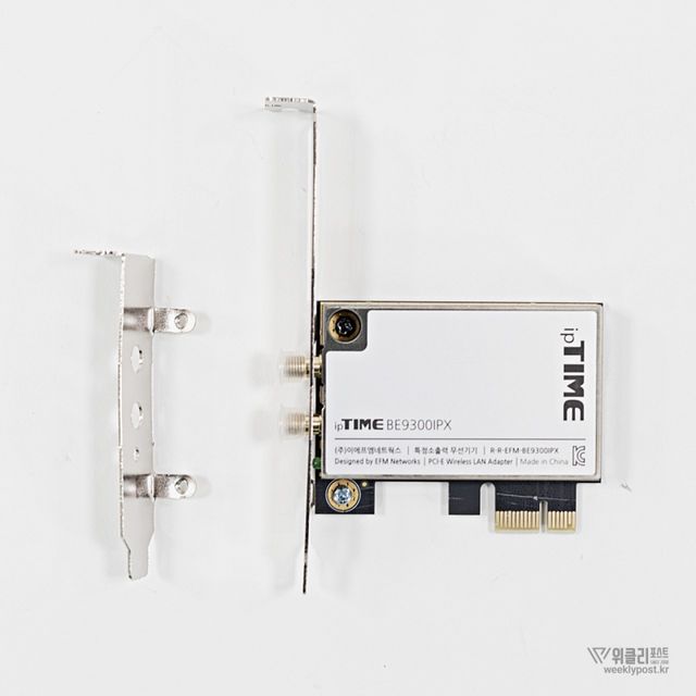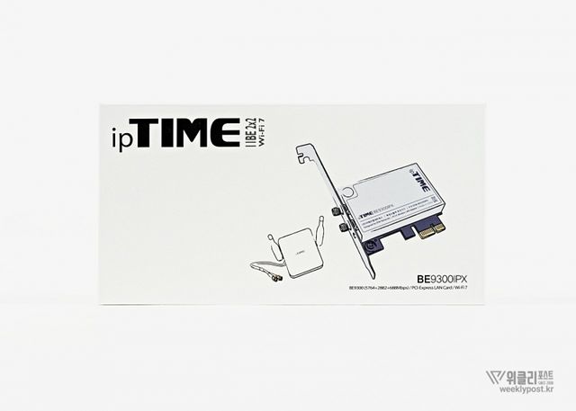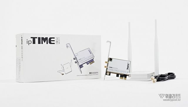 아이피타임 BE9300IPX 무선 랜카드는 네 가지 주요 부품으로 구성되어 있다. 데스크탑 PC 내부의 PCI 슬롯에 꽂는 카드 형태의 본체, 외부에 세워 사용하는 외장 안테나, 이 둘을 연결하는 커넥터, 그리고 본체와 메인보드를 연결하는 내부 커넥터가 포함된다. 또한, 슬림 PC 사용자들을 위한 LP 브라켓도 함께 제공한다.