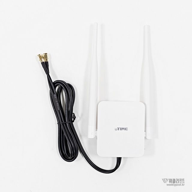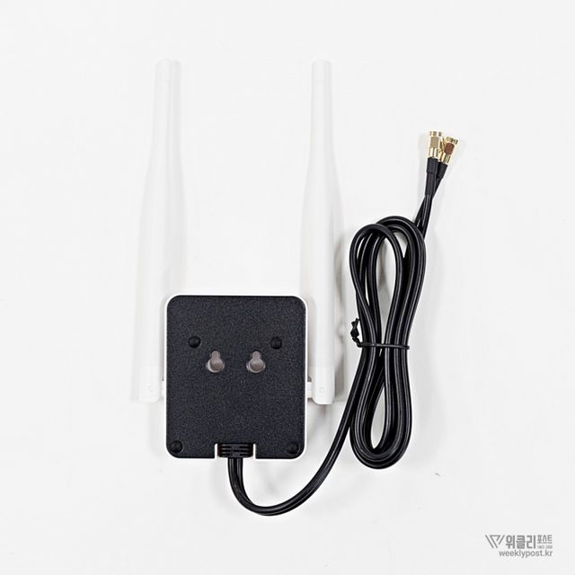 외장 안테나는 심플한 흰색 사각형 본체에 스틱형 안테나 두 개가 부착된 형태다. 이 안테나는 회전 및 굽힘이 가능해 전파 수신 감도를 쉽게 조절할 수 있다. 5dBi의 감도를 가진 두 개의 안테나는 2Tx-2Rx 다중 전송을 제공하여, 내장 안테나보다 훨씬 우수한 송수신 성능과 넓은 수신 거리를 보장한다. 외장 안테나는 본체와 1미터 길이의 연장 케이블로 연결되며, 이를 통해 자유롭게 안테나의 위치를 조정할 수 있다.