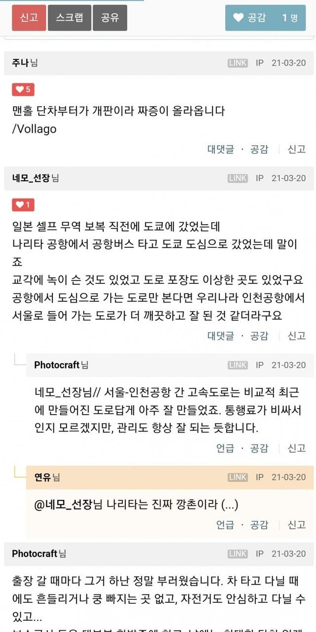 반일하던 보배드림, 클리앙, 엠팍 형님들도 하나같이 칭찬일색임