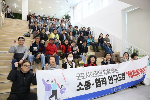 군포시의회 해피투게더는 앞선 8월 시의원과 의회사무과 직원들의 소통 강화 워크숍을, 또 이은 9월에는 시청 및 산하기관 공무원과의 교류 확대를 위한 소통 기술 워크숍을 진행한 바 있다.