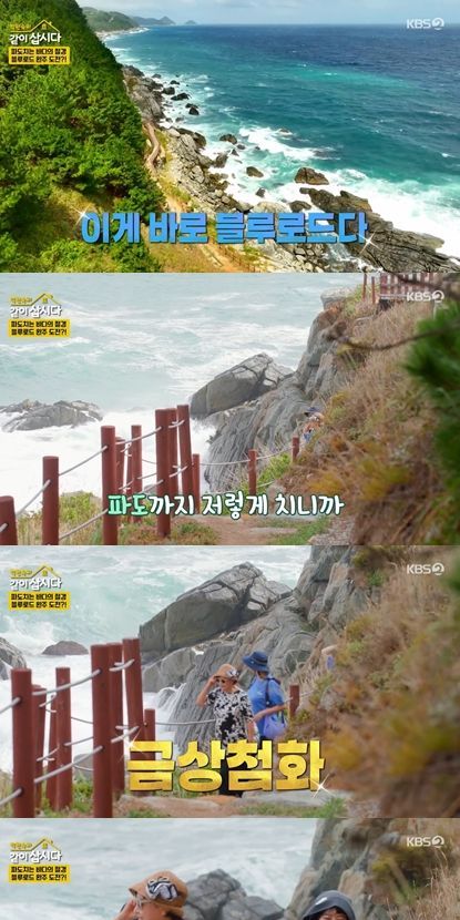 김미려가 솜씨 발휘한 아침 식사를 맛있게 먹은 네 사람은 영덕의 푸른 바다를 배경으로 펼쳐진 블루로드 트레킹에 나섰다. 블루로드는 영덕의 대표 해안길로, 대게누리공원에서 고래불해수욕장까지 64.6km의 코스를 걷는 도보 여행길이다.