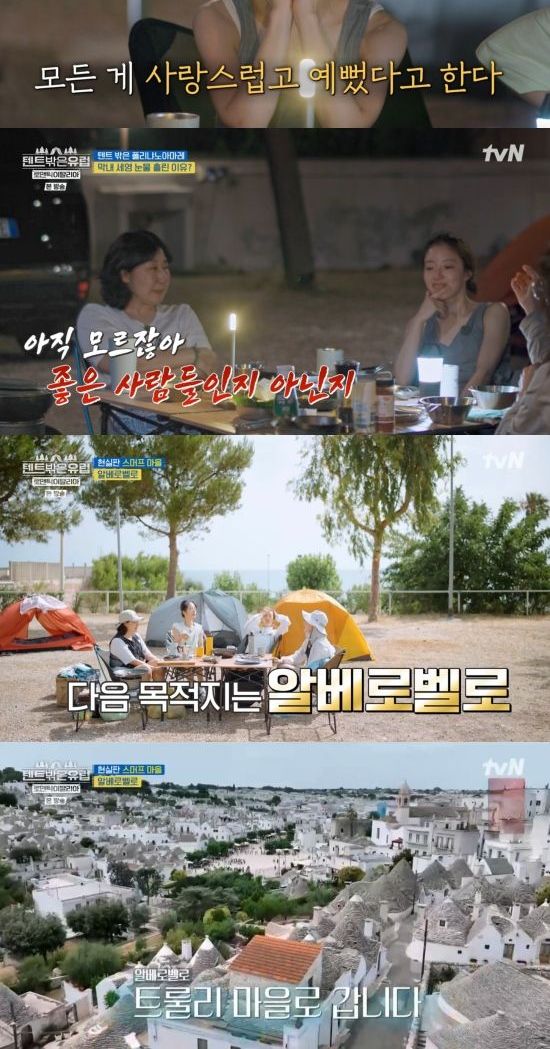 24일 방송된 tvN '텐트 밖은 유럽-로맨틱 이탈리아 편'에서는 라미란, 곽선영, 이주빈, 이세영이 아드리아해 뷰 캠핑장을 떠나 알베로벨로로 떠나는 장면이 전파를 탔다.