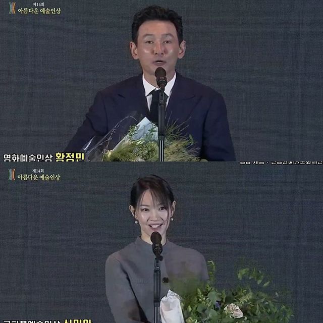 이어 황정민은 내빈석에 앉아 있는 자신의 첫 영화 ‘장군의 아들’ 연출자였던 임권택 감독에게 감사 인사를 전하기도 했다. 신민아는 굿피플예술인상을 받았다. 그는 “이 상의 취지와 뜻을 생각하면서 앞으로 한 사람으로서, 배우로서도 좋은 활동을 하며 내가 하는 일의 의미를 생각해 보겠다”고 수상 소감을 전했다.