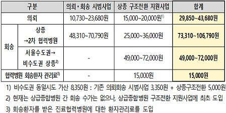 수도권 상급종합병원에서 비수도권 상급종합병원으로 환자 회송도 촉진할 수 있도록 상종 간 회송에 대한 지원도 새롭게 신설한다.
