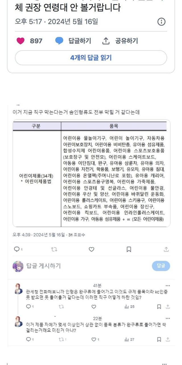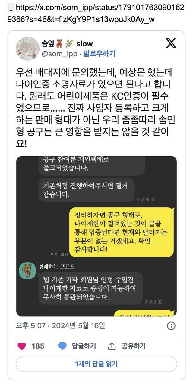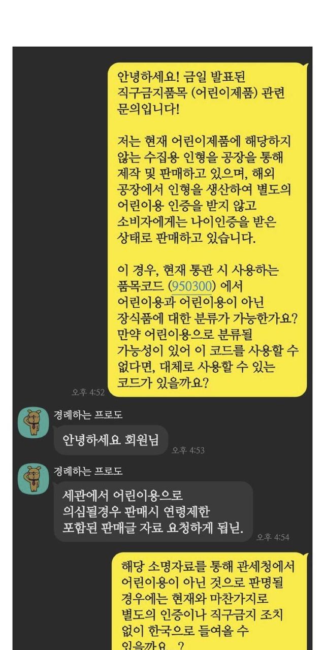 만약 아동품목으로 의심받으면 증빙자료 요구한대