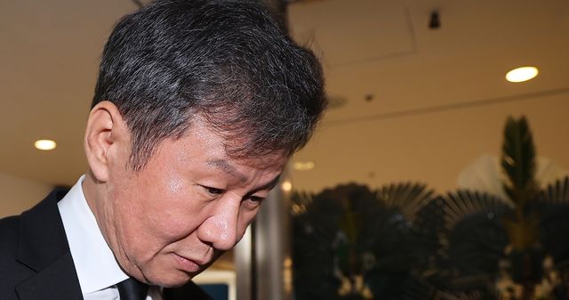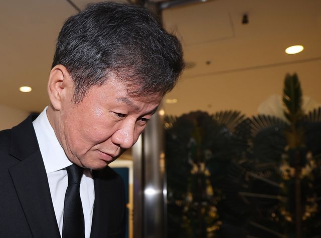 정 회장은 24일 국회 문화체육관광위원회 종합감사에 증인으로 출석했다. 정 회장은 홍명보 한국 축구 대표팀 감독 선임 과정과 축구협회 사유화 논란 등 다수 의원에게 질타받았다.