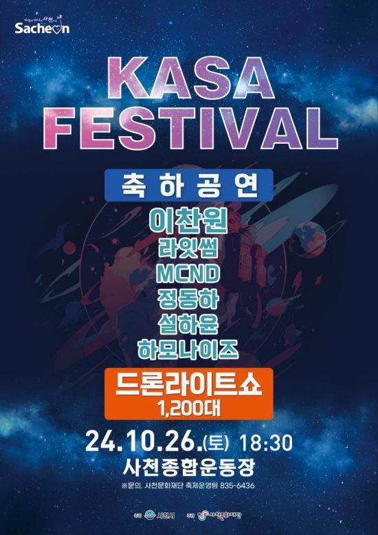 사천문화재단(대표이사 김병태)은 10월 26일 사천종합운동장에서 'KASA(Korea Aerospace Administration) 페스티벌'을 개최한다고 밝혔다.