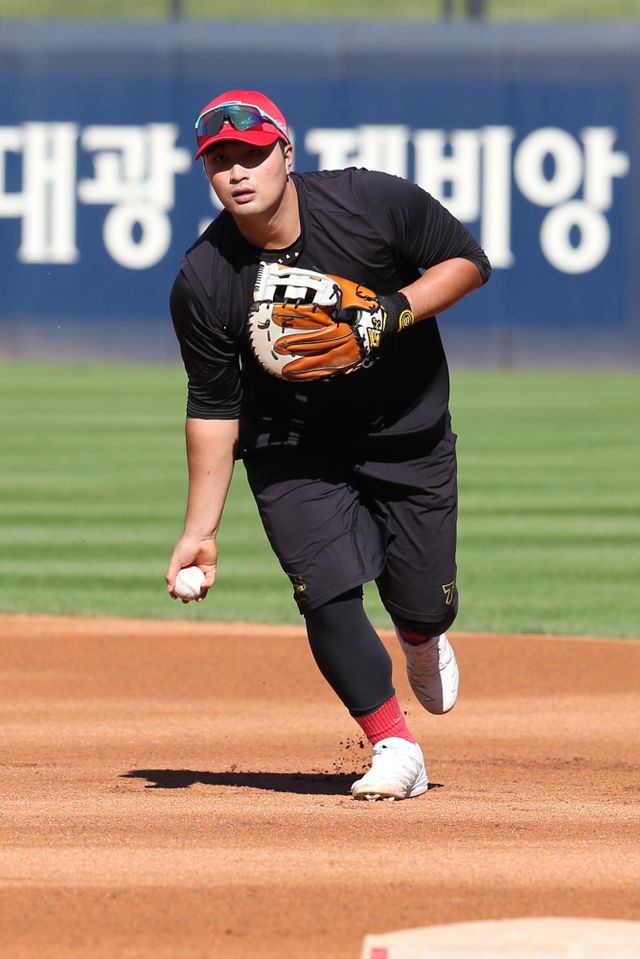 이범호 감독은 누구보다 문제를 잘 파악하고 있다. 이 감독은 KS 2차전을 마친 뒤 "타격보다 수비가 좀 더 중요한 시점이 된 거 같아서 3명의 선수를 상황에 따라 돌아가면서 치러야지 않을까"라고 고심의 흔적을 내비쳤다. 올 시즌 KIA의 1루는 이우성·서건창·변우혁의 '3인 체제'였다. 세 선수의 선발 출전 비중이 무려 98.6%(144경기 중 142경기). 개막 1루수 황대인이 3월 말 햄스트링 부상으로 쓰러진 뒤 이우성이 그 공백을 채웠다. 이우성이 6월 말 부상으로 이탈하자 서건창과 변우혁에게 출전 기회가 돌아갔다. 이우성과 서건창은 전문 1루수가 아니고 변우혁은 경험이 부족하다.