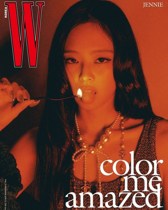 24일 제니는 자신의 인스타그램에 "W has arrived(매거진 'W'가 발간되었습니다)"라는 글과 함께 화보 컷을 공개했다.